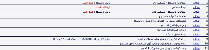 - ثبت کد پیگیری کارنامه سلامت جسم و روان (دریافت شده در مراحل قبلی) و کد پیگیری تاییدیه تحصیلی دیپلم (دریافت شده در مراحل قبلی) در مراحل ثبت نام
